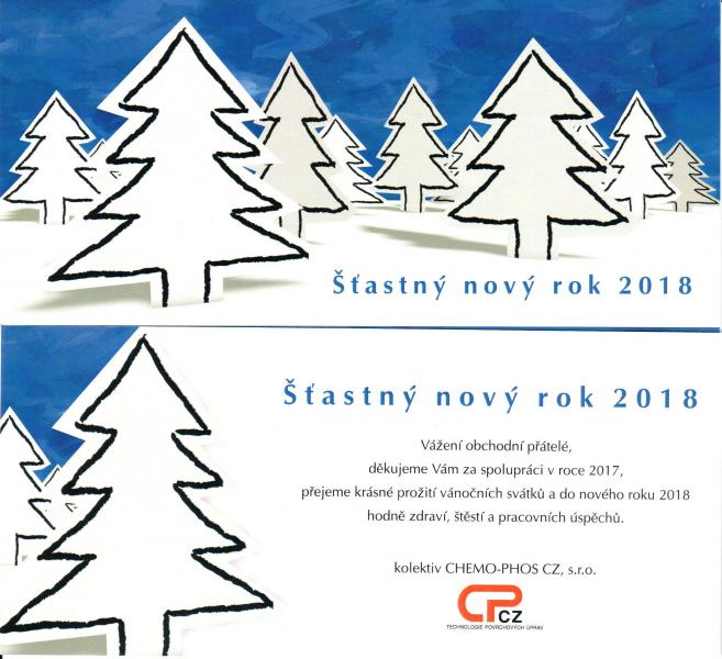 Vážení obchodní přátelé, děkujeme Vám za spolupráci v roce 2017, přejeme krásné prožití vánočních svátků a do nového roku 2018 hodně zdraví, štěstí a pracovních úspěchů.