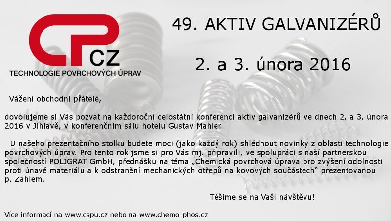 Hlavní stránka > Firma > Novinky > Pozvánka na 49. AKTIV GALVANIZÉRŮ 2016